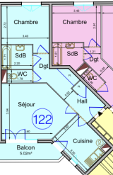 Appartement 2 pièce(s) 1 chambre(s) 51 m²